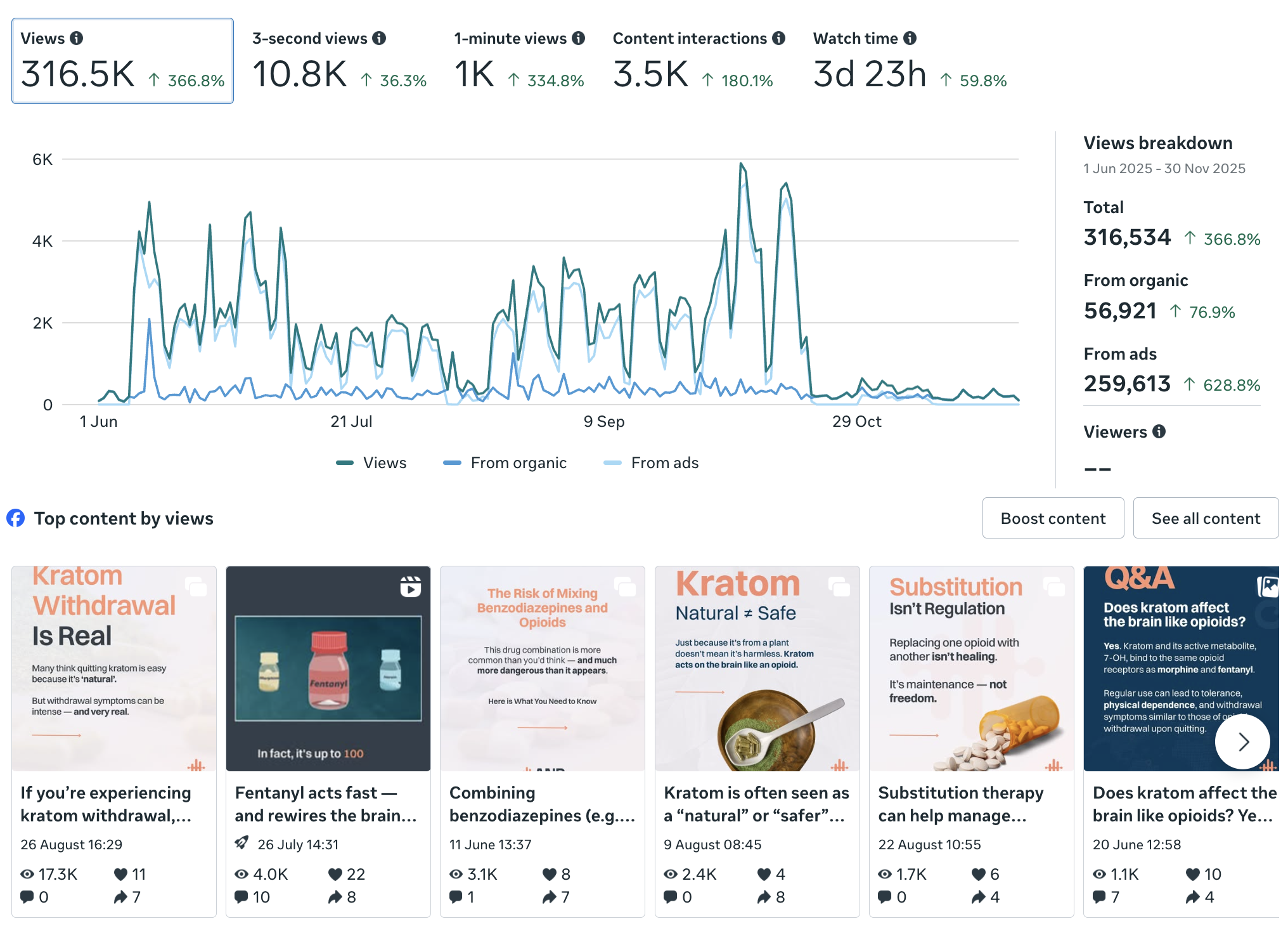 Our consistent strategy delivered over 900k total views across the web. We maintained a large, steady audience with 317k views on Facebook, 264k on TikTok, and 111k on Instagram, proving the long-term value of the content.