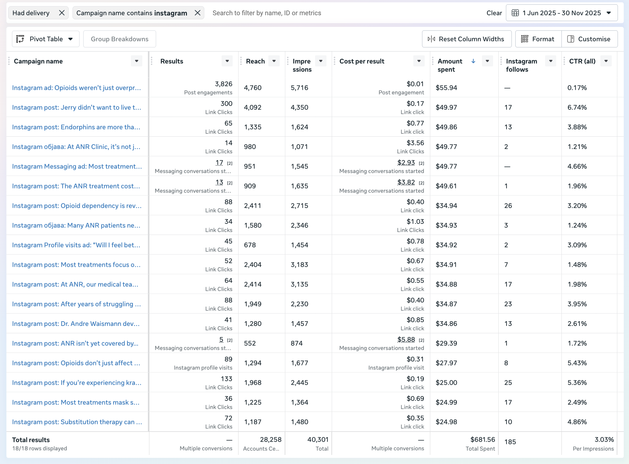 Smart Expansion & US Targeting: The brand footprint expanded organically to X, LinkedIn, Pinterest, and Threads. However, the primary focus remained on Instagram, Facebook, and TikTok, where posts were specifically boosted to a US audience to reach the right patients.